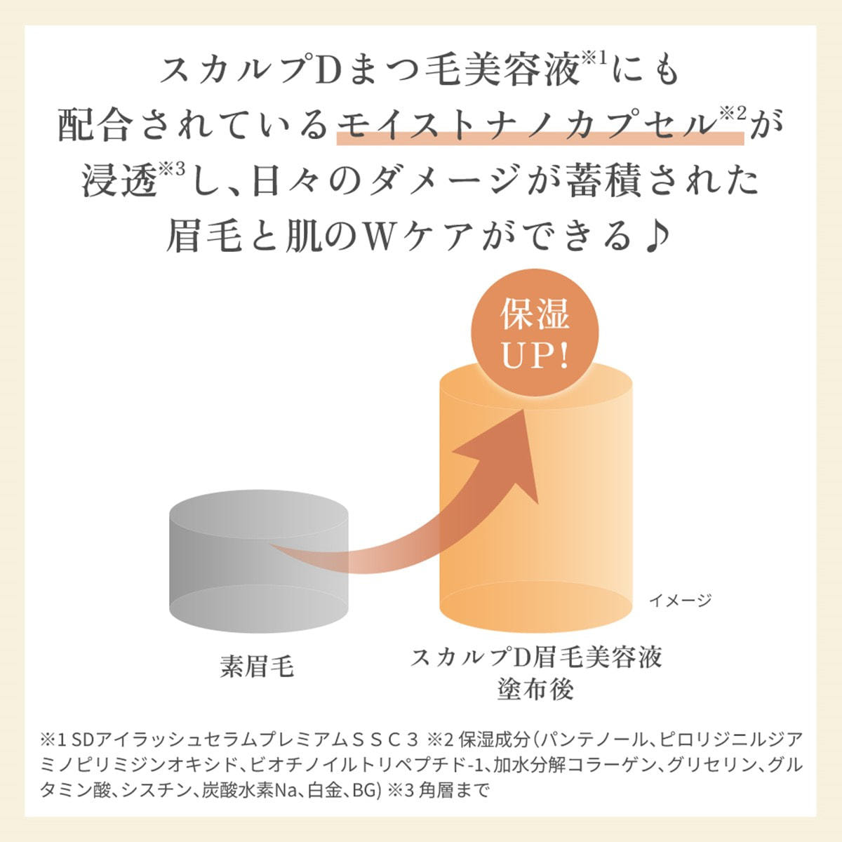 ※1 眉毛が生えている地肌のこと※2 SDアイラッシュセラムプレミアムSSC3